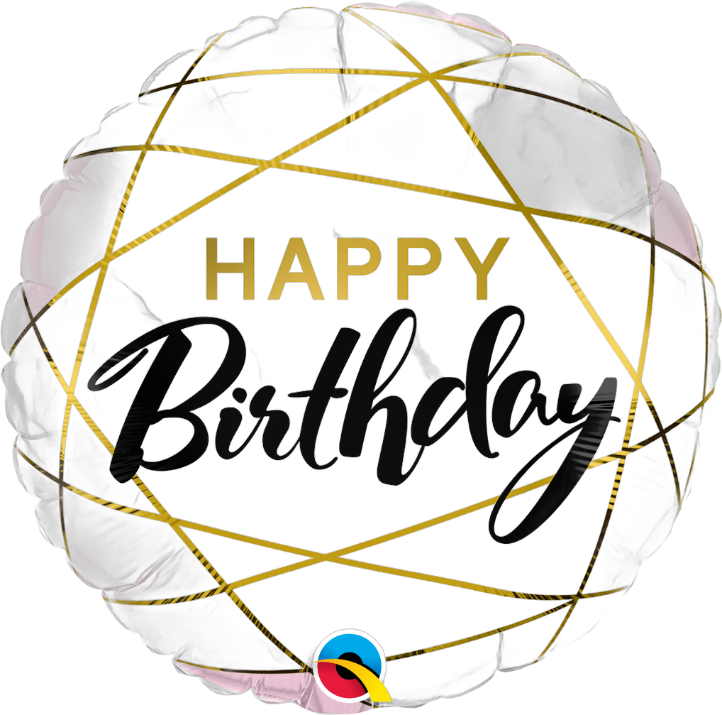 BALÃO METALIZADO 18" REDONDO HAPPY BIRTHDAY MARMORE 46CM
